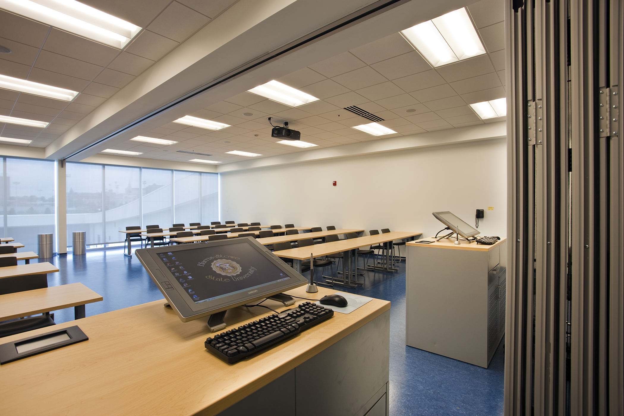 The facility contains high-tech audio and video systems, and mirrored one-way glass for students and parents to observe the children from the higher education classrooms. Other amenities include a parents’ library and education room, a computer lounge for students, a multipurpose room with full kitchen, smart board technology in all classrooms and a large multimedia classroom/lecture hall.