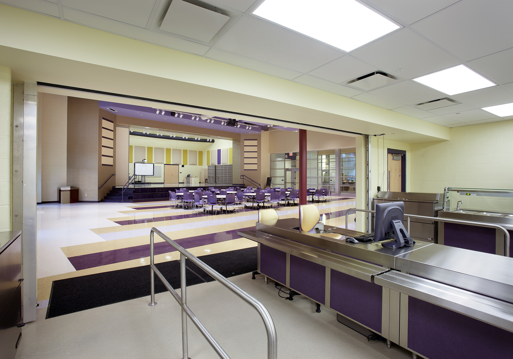 ADA accessible cafetorium, library, gymnasium, computer lab and meeting rooms are located at the front of the school for convenient access from parking and drop-off areas.