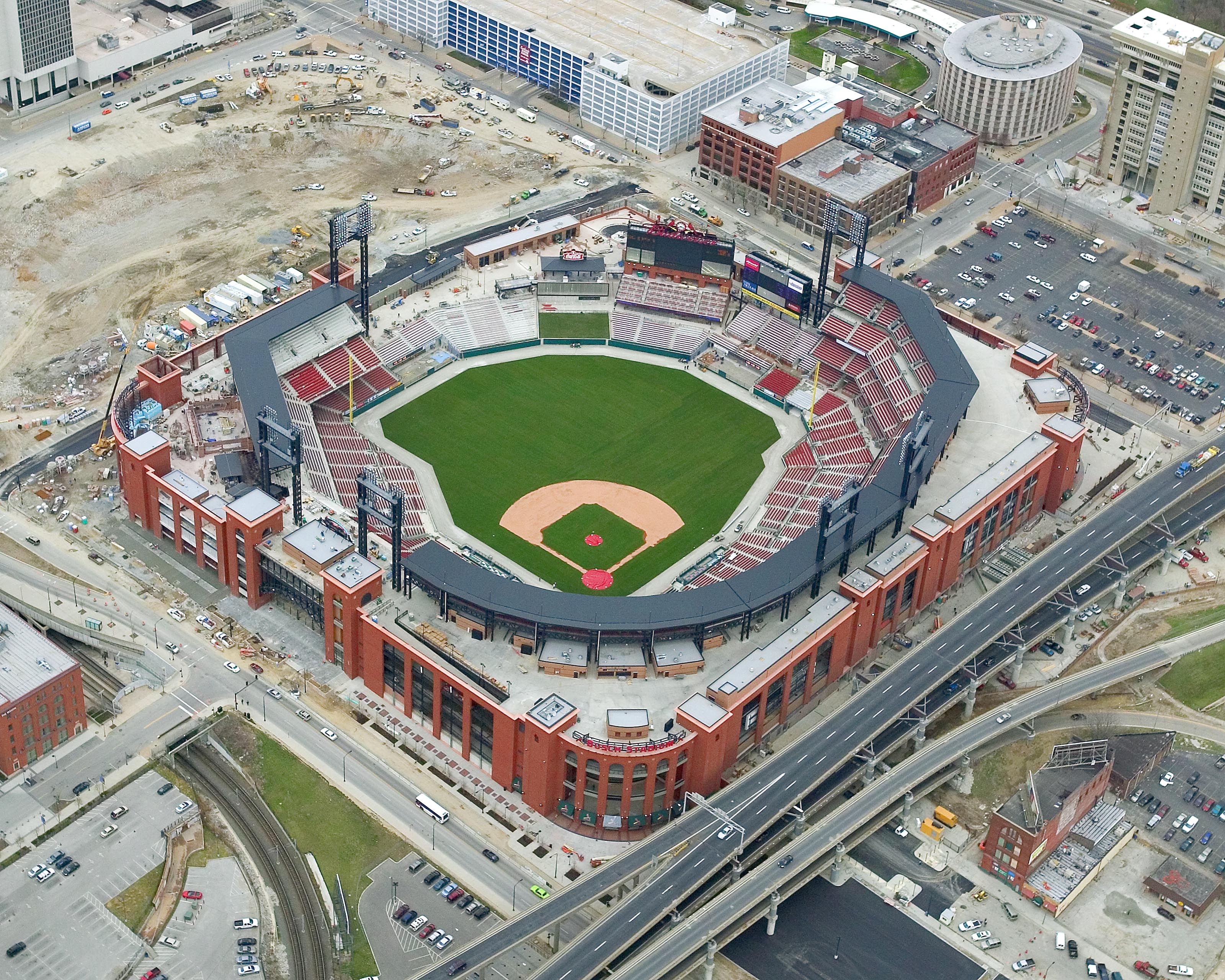 The team of Hunt Construction Group in association with Kwame Building Group (Hunt/KWAME) was responsible for construction management of the new St. Louis Cardinals Busch Stadium.