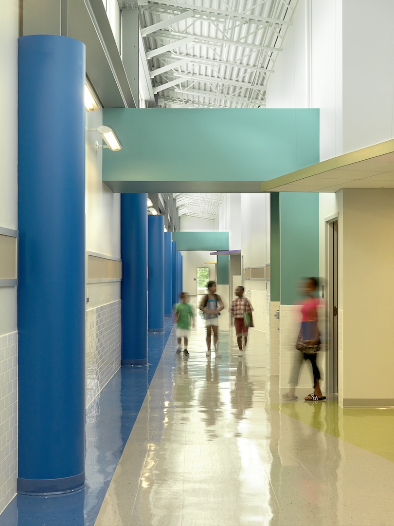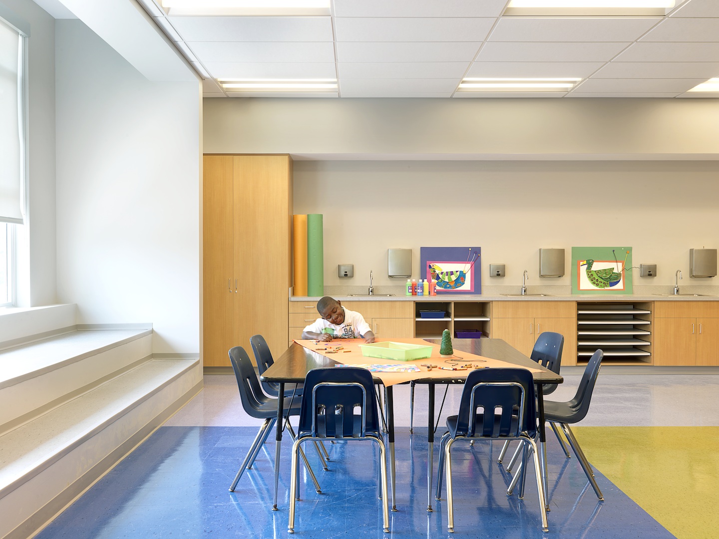 The new two-story, 64,834-square-foot school features 24 classrooms, including several specialized classrooms and specialty spaces that enable students to do more exploratory work and self-discovery. The school opened with 385 students, with capacity to accommodate up to 500 students.